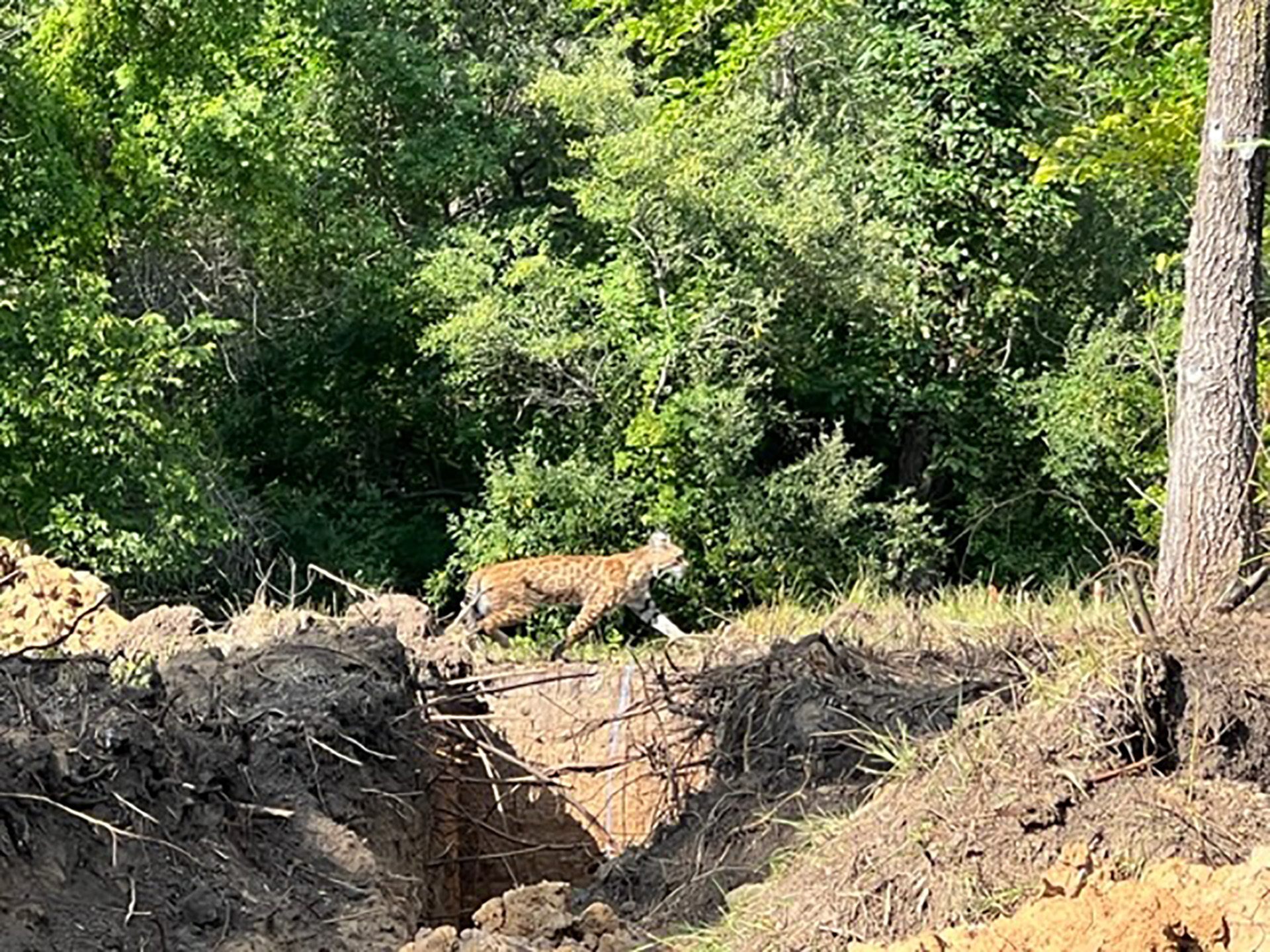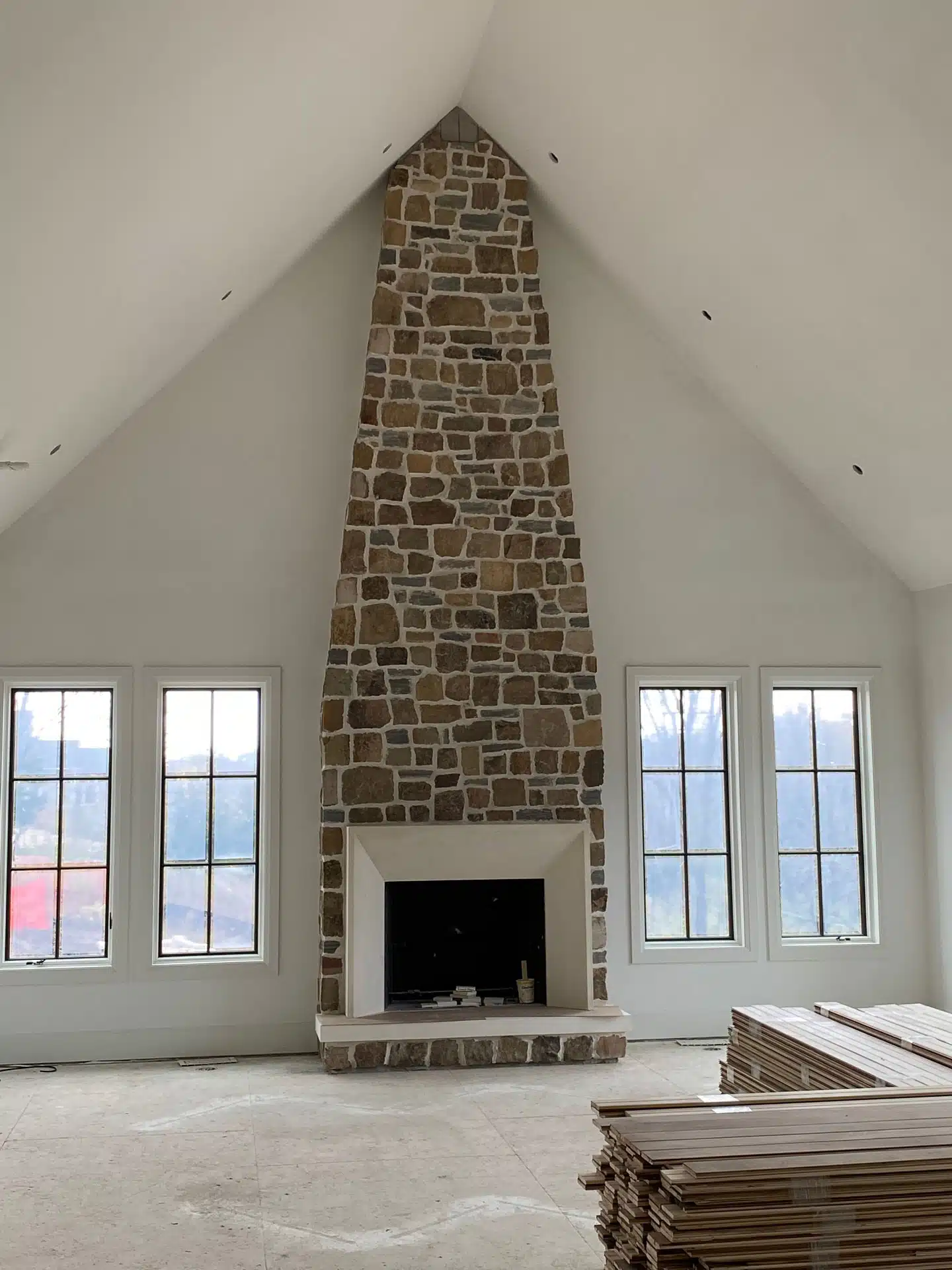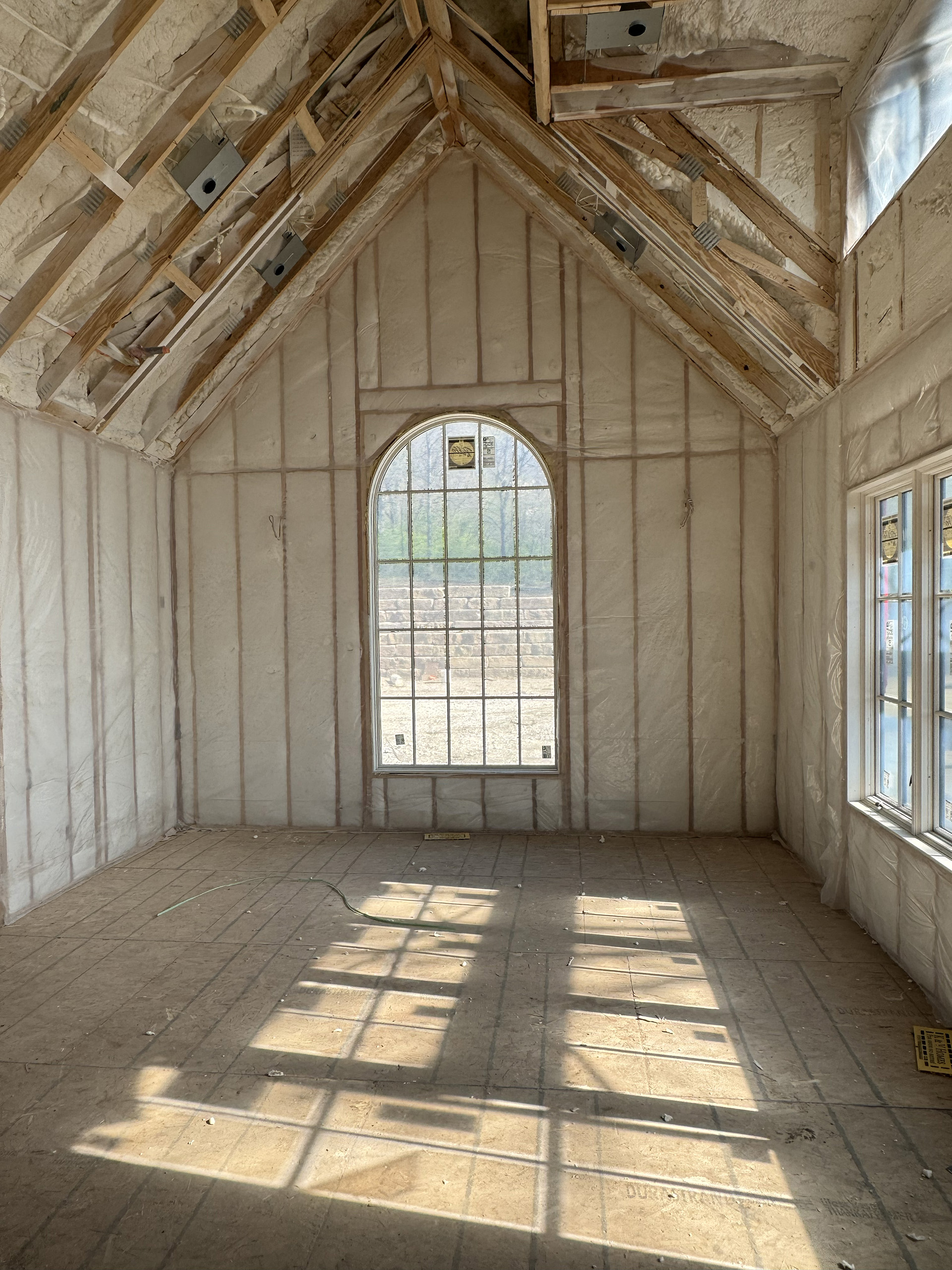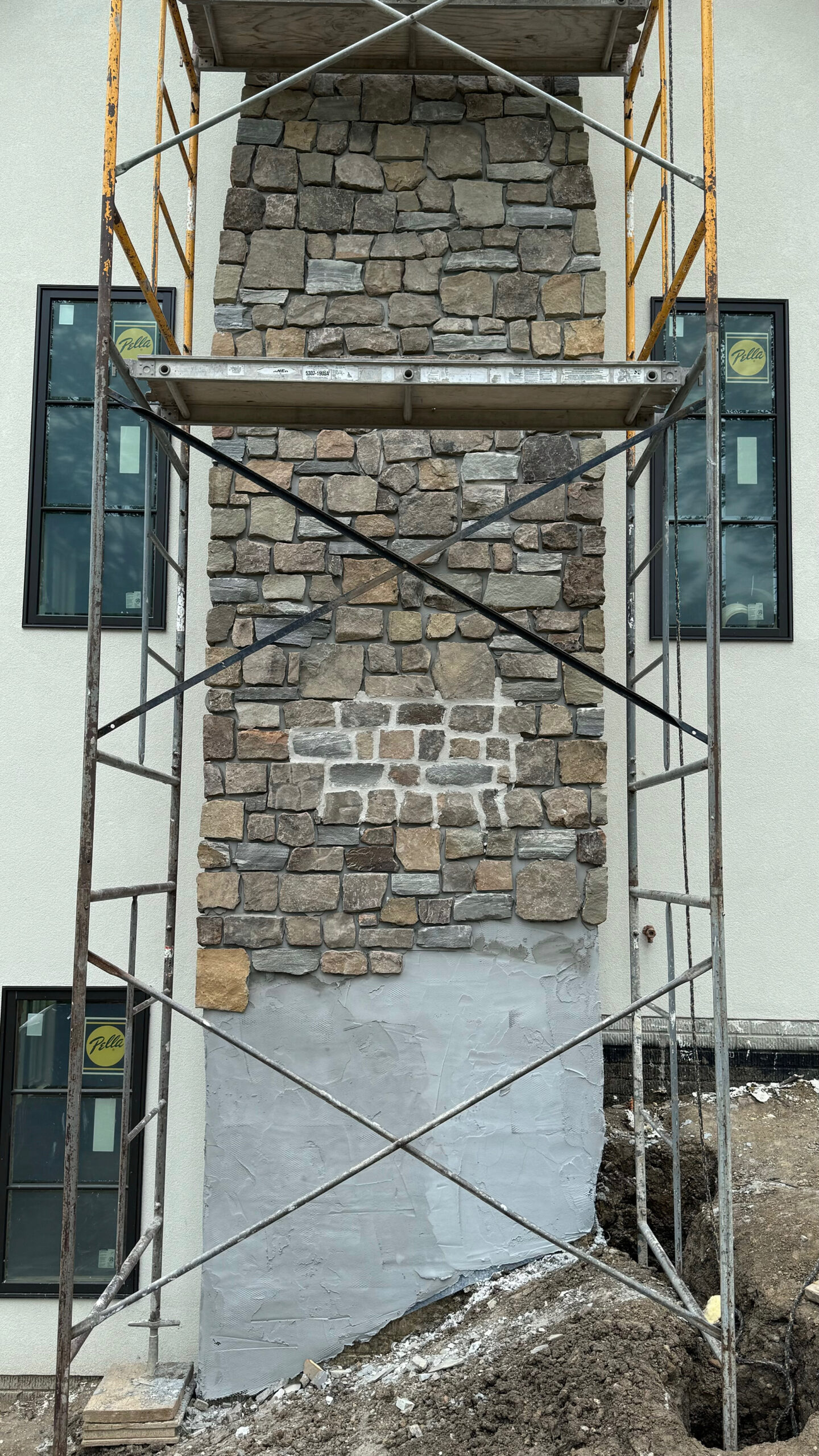 Construction is under way on this new house nestled into the trees of the rugged Iowa hillside.