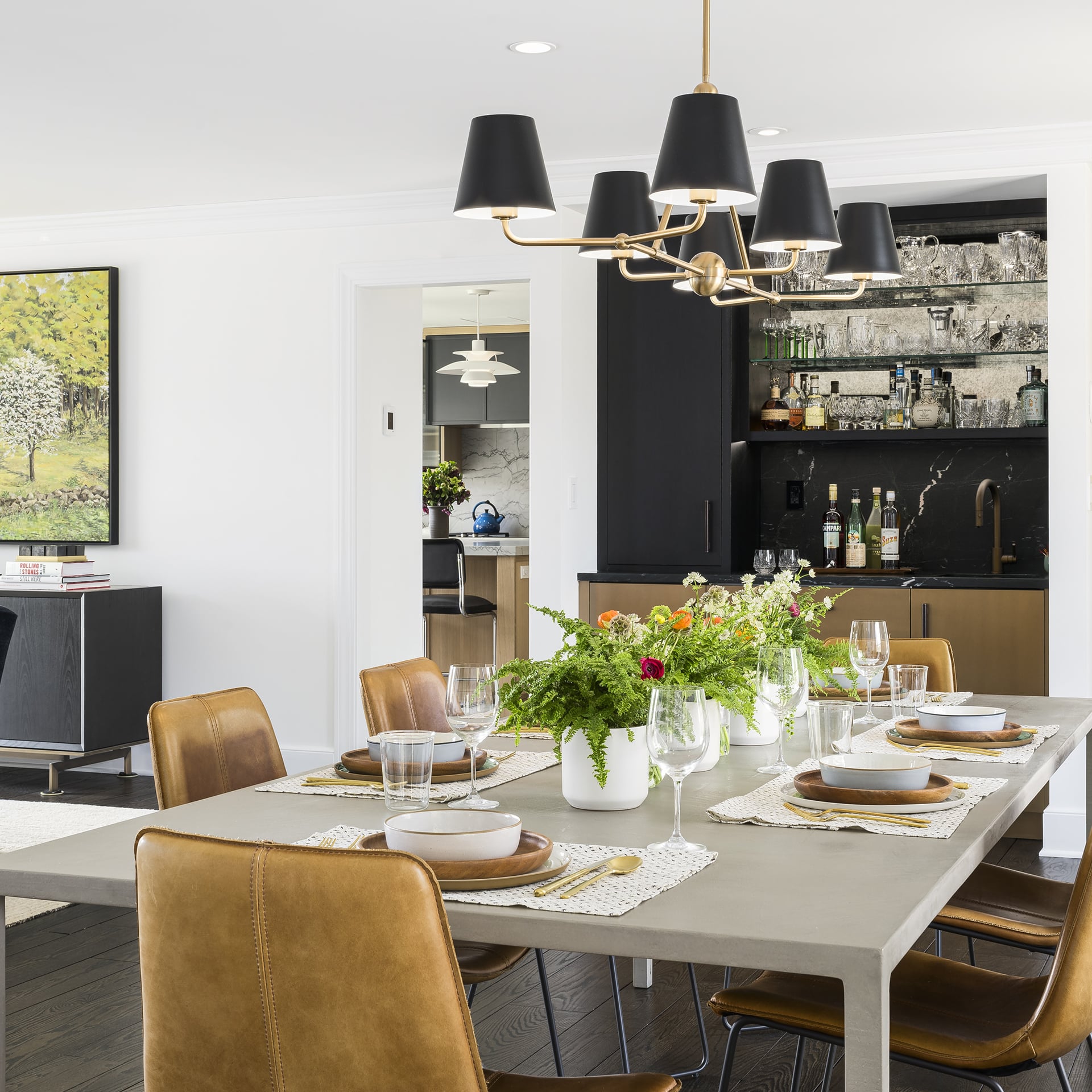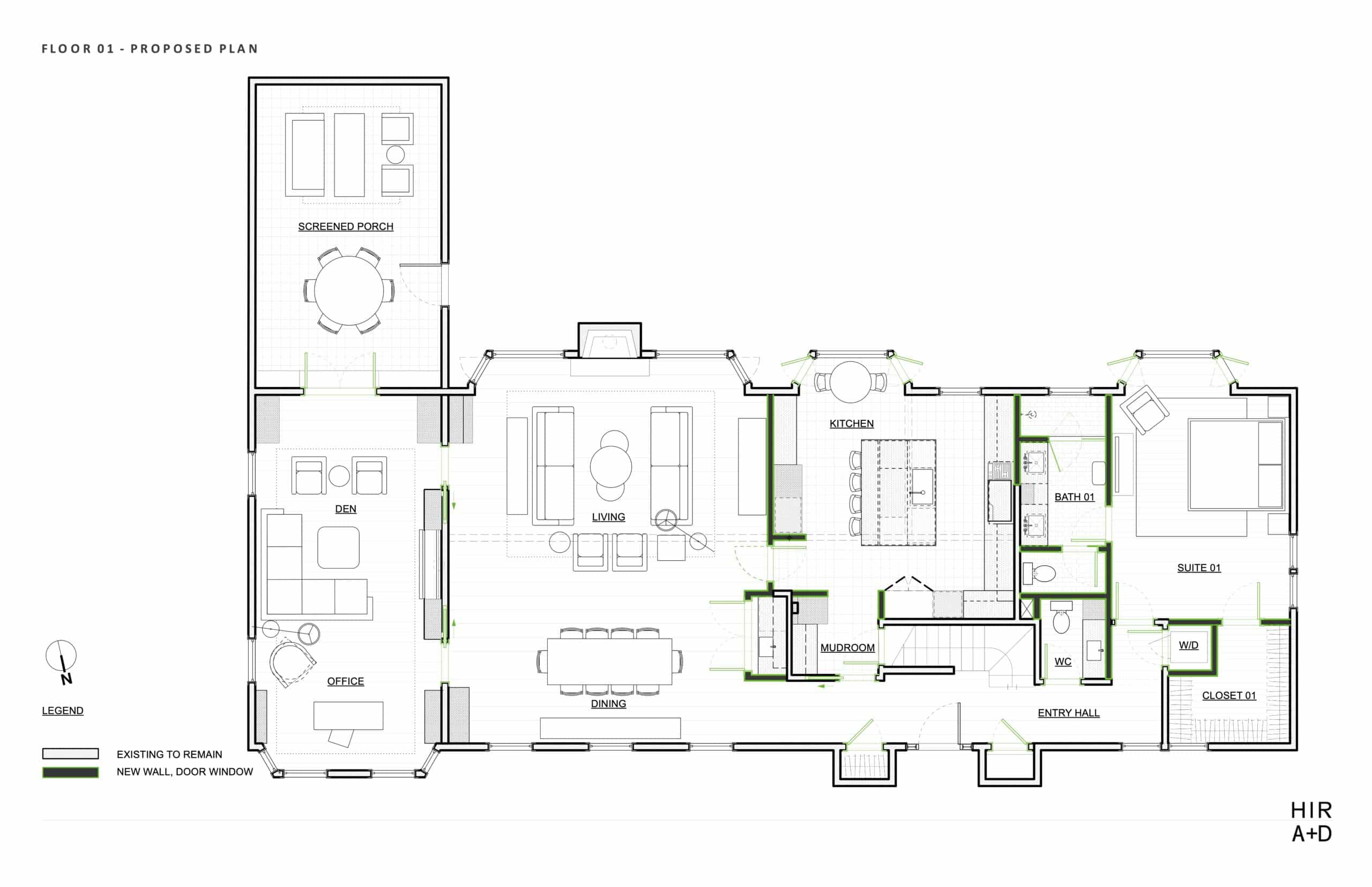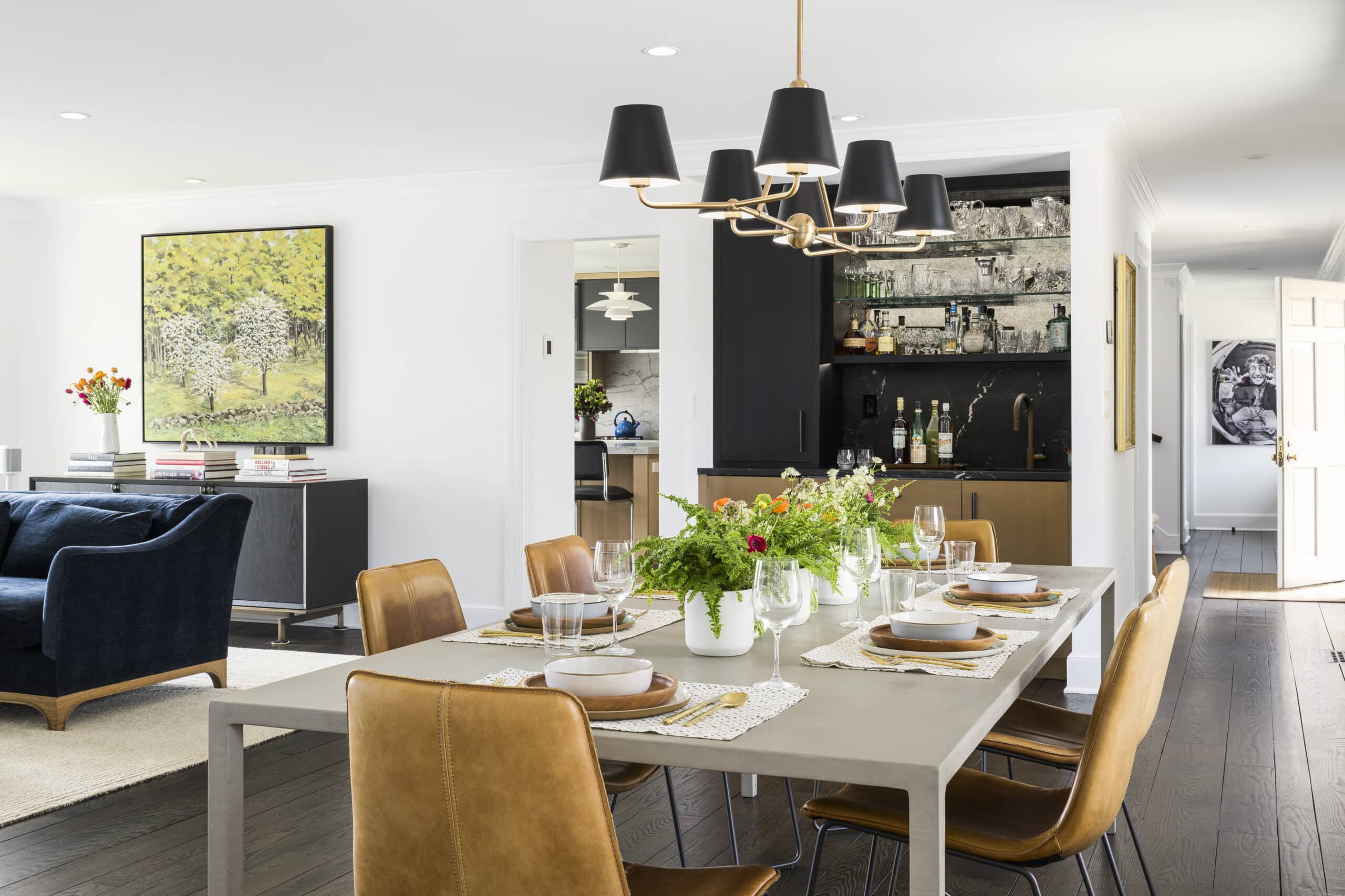 They asked HIR A+D to help reconfigure and refresh the existing kitchen, dining, powder room, and laundry, as well as convert the ground floor guestroom into a primary bedroom with and on suite bathroom. With a few thoughtful moves, we transformed the kitchen into the focal point of the house, able to support myriad functions to serve a growing family and their many guests. The finishes selected are clean and modern, unifying the style of the house with that of the owner’s existing art and furniture.
