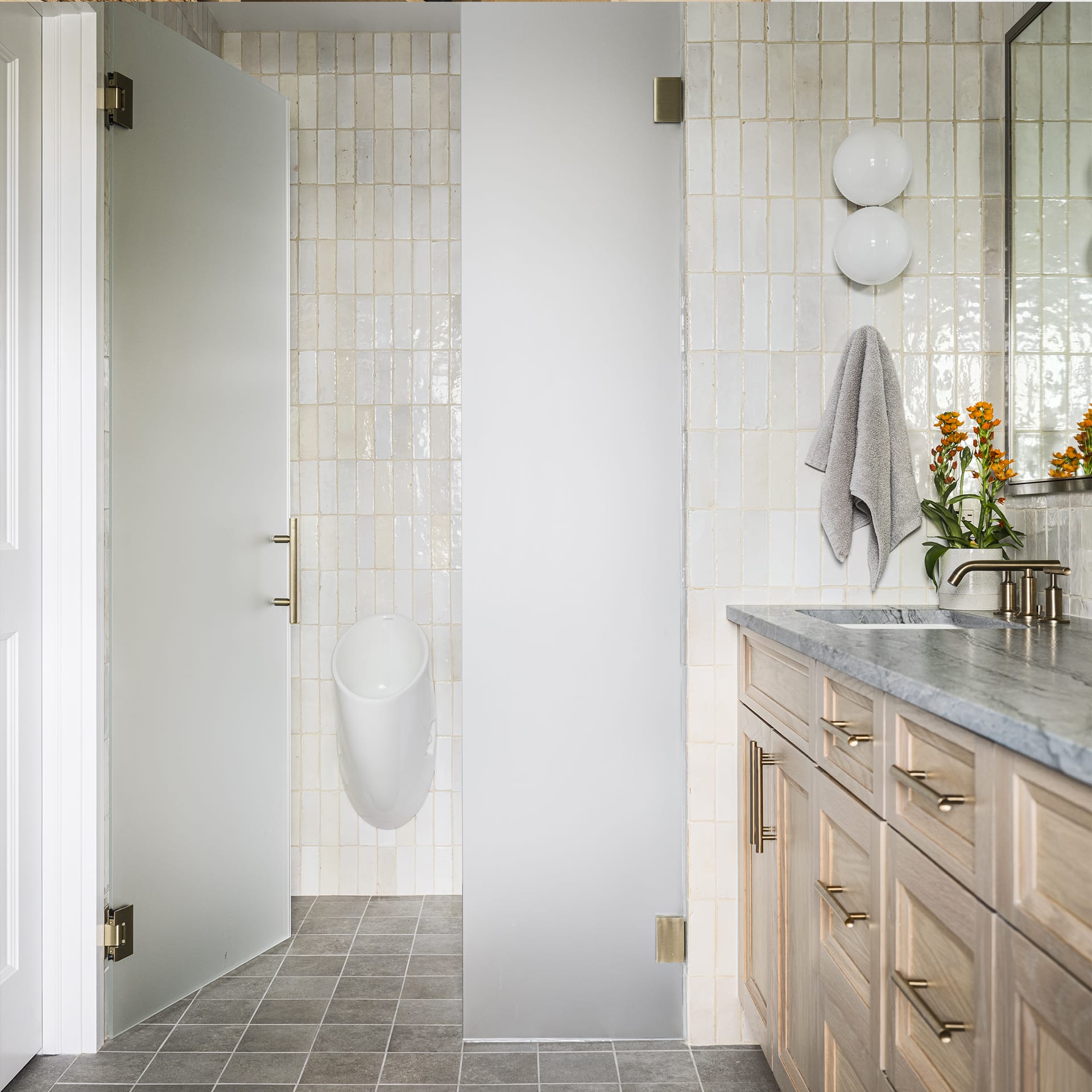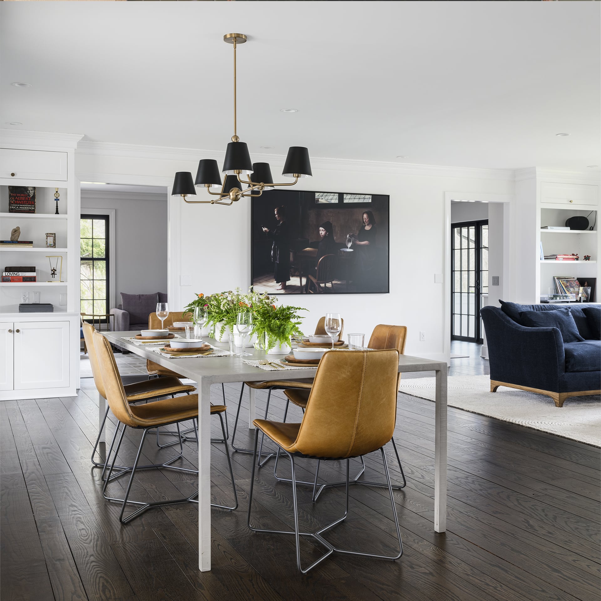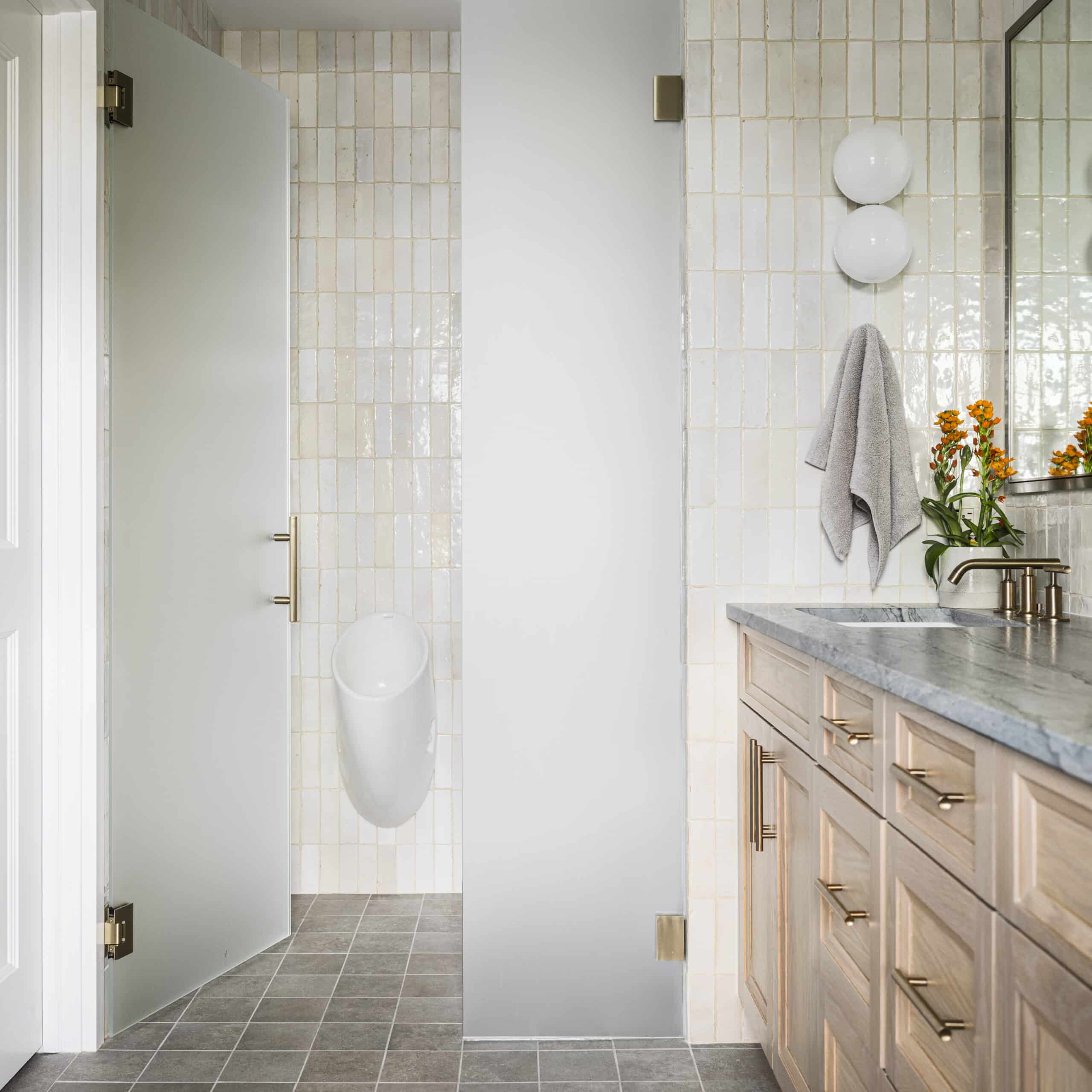 They asked HIR A+D to help reconfigure and refresh the existing kitchen, dining, powder room, and laundry, as well as convert the ground floor guestroom into a primary bedroom with and on suite bathroom. With a few thoughtful moves, we transformed the kitchen into the focal point of the house, able to support myriad functions to serve a growing family and their many guests. The finishes selected are clean and modern, unifying the style of the house with that of the owner’s existing art and furniture.