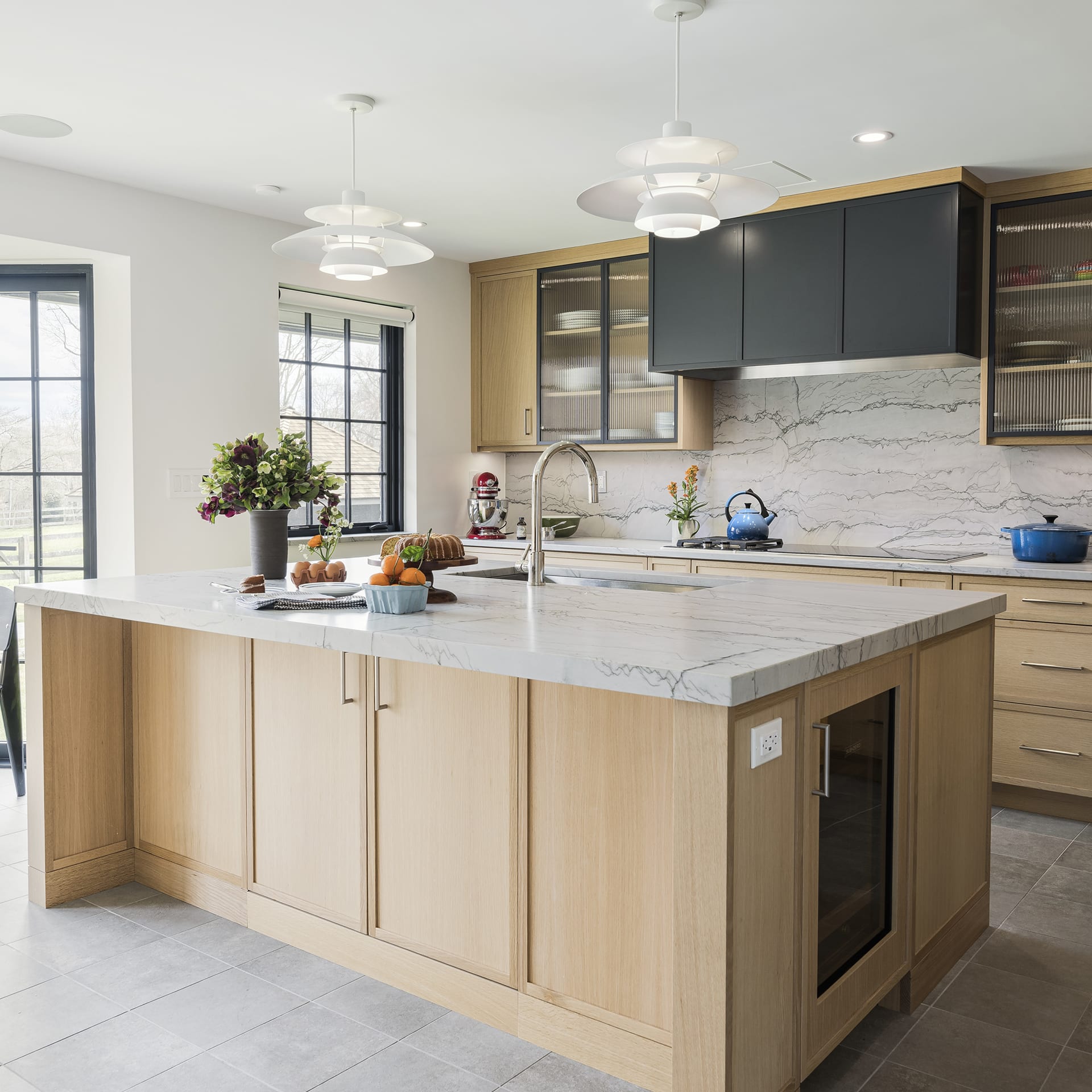 For a couple who love to cook and entertain, finding a hilltop home oriented around a pool with ample outdoor access and expansive countryside views was incredibly fortunate. To complete their dream home, they enlisted HIR A+D to transform the tiny kitchen into a polished space where they can showcase their culinary prowess, comfortably gather and serve, and easily transition from indoor to outdoor entertaining.