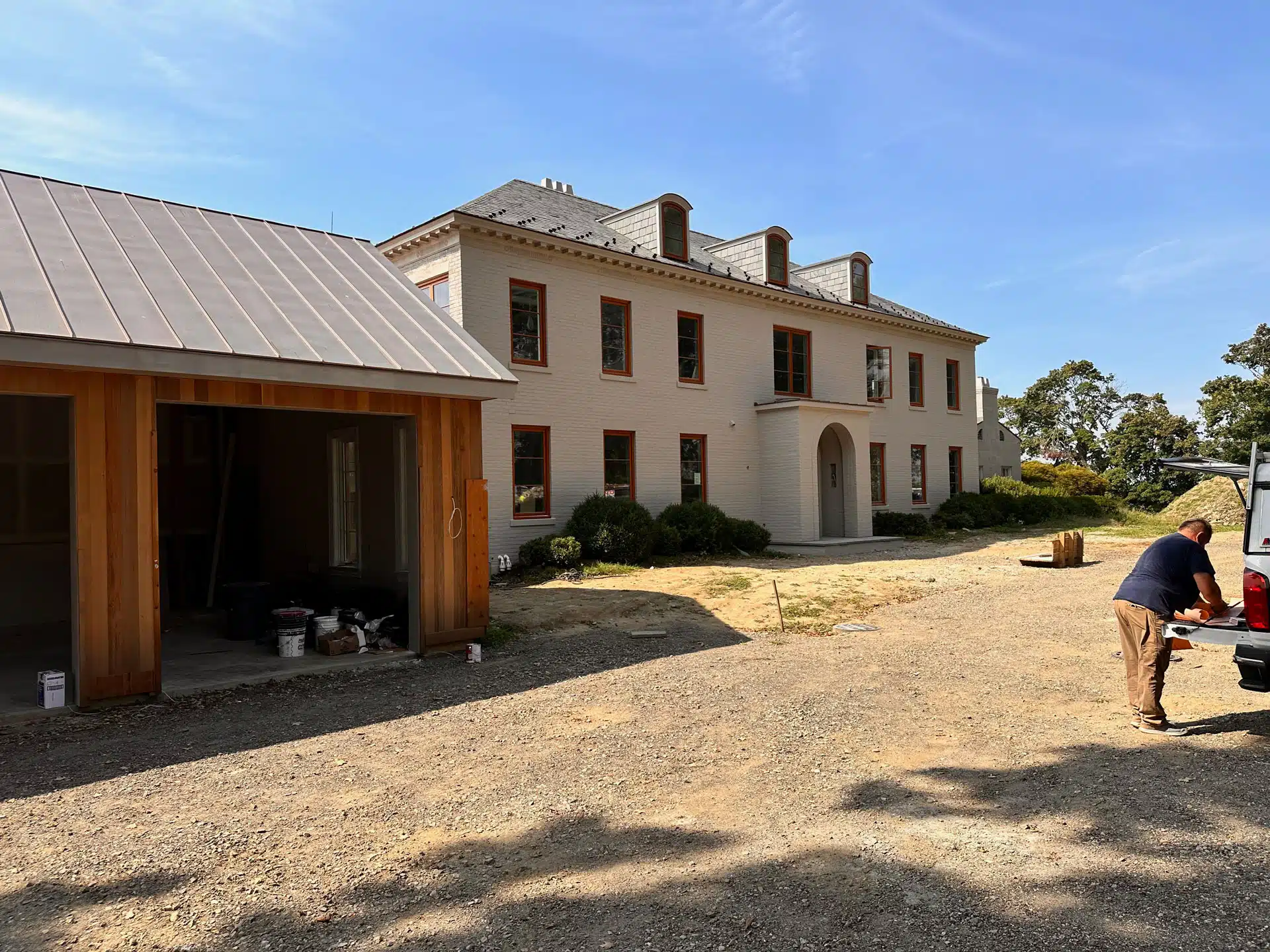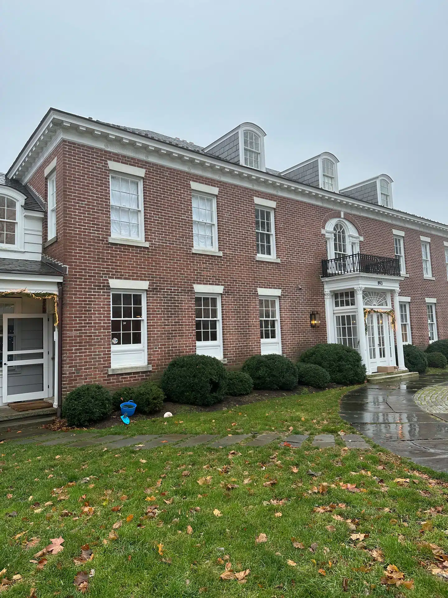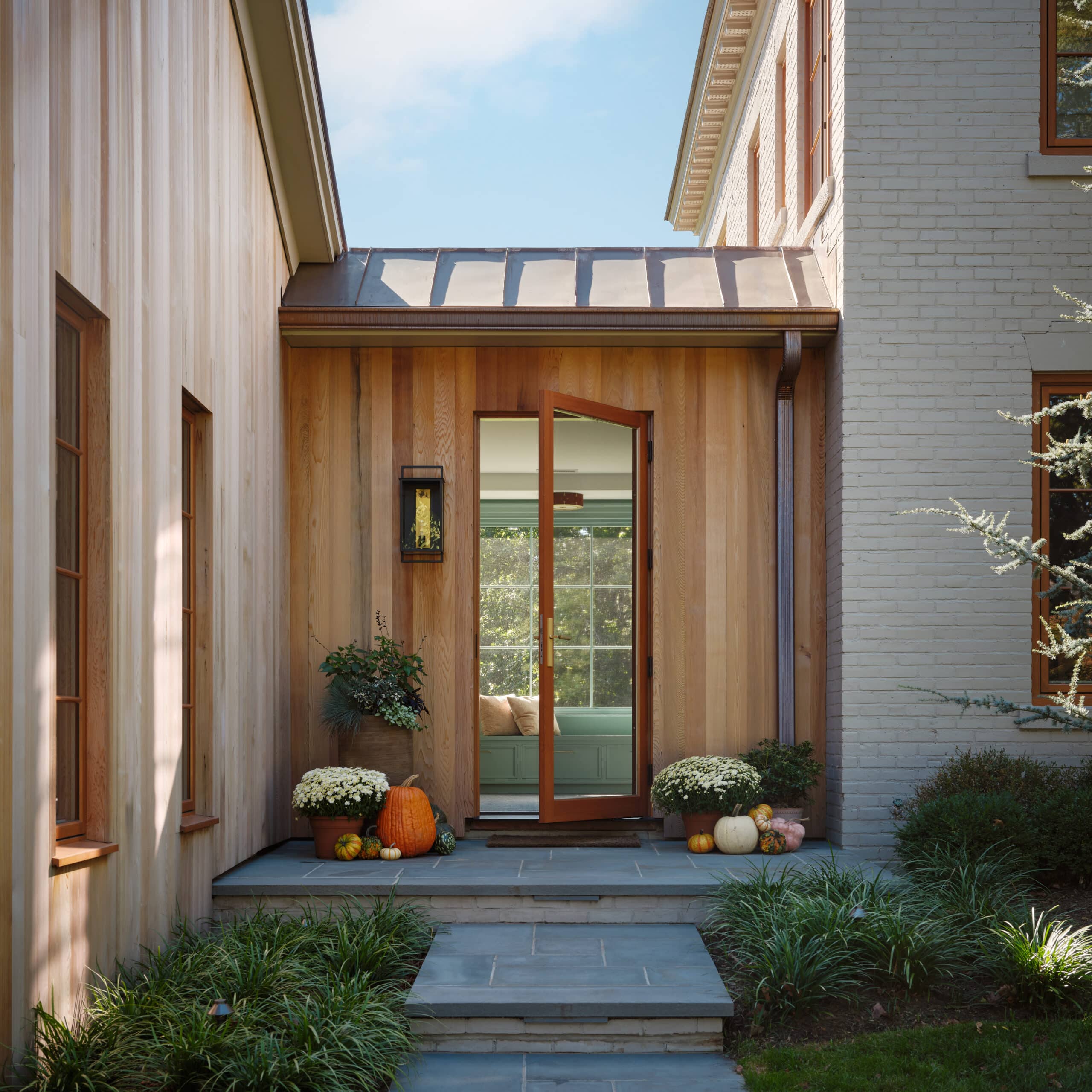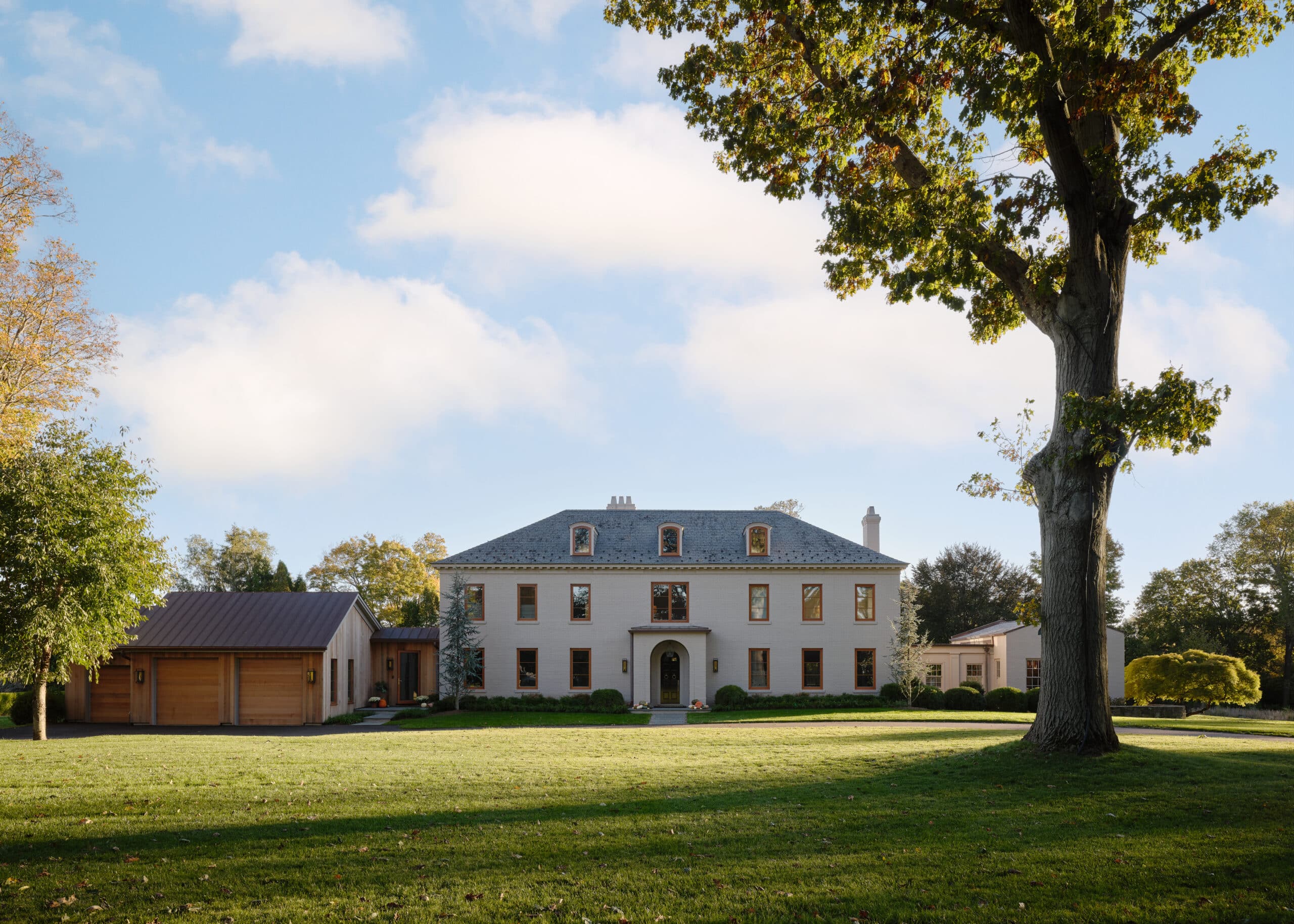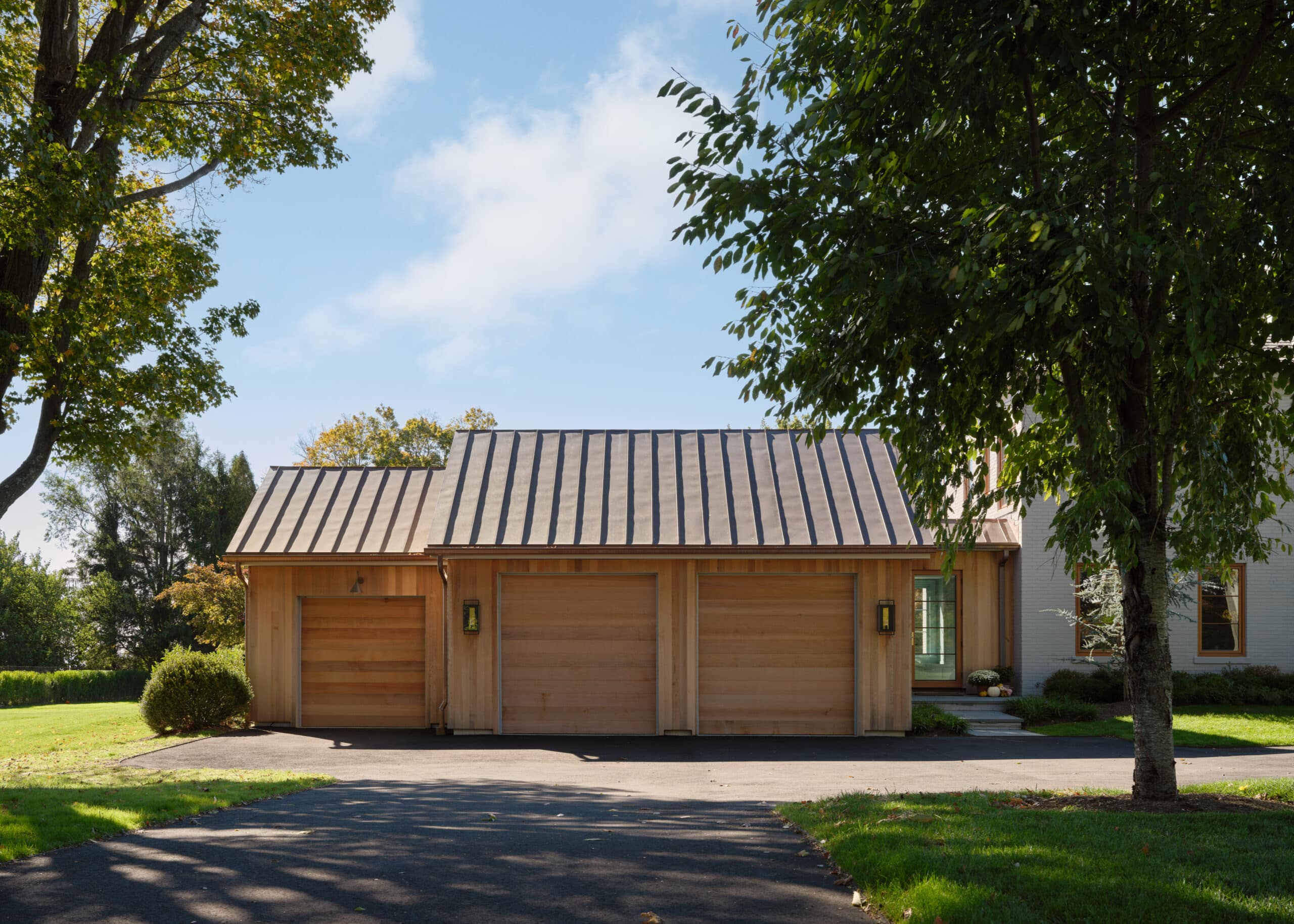 The clients asked for a few additions to the house, including a 2-car-plus utility garage that could double as an indoor basketball court. The new addition would also need to include a mudroom, half-bath and large WFH office space. The front entry to the house needed repair and editing and became a focal point for new design with a large brick arched portico and doorway.